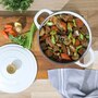 • The self-basting lid makes for effective steam retention with raised nubs underneath the lid to collect moisture and redirect it onto the food