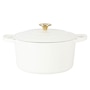 • Heavy cast iron construction distributes and retains heat evenly, suitable for making mother sauces, reducing wine, deglazing fond or simply boiling eggs