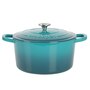 The Crock-Pot 7-quart round enamel cast iron covered Dutch oven in Aqua Blue Ombre is a versatile addition to any kitchen. Made of durable cast iron with an enamel finish, it is suited for a variety of cooking tasks. Its matching self-basting lid helps retain moisture and flavours for delicious results. With a capacity of 7-quarts, it's great for large meals or batch cooking alike. This Dutch oven is oven safe and easy to care for, though hand washing is recommended to maintain its quality.