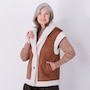 Supplement your look in elevated style with this faux leather and Sherpa vest from Crystal Kobe.