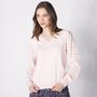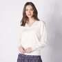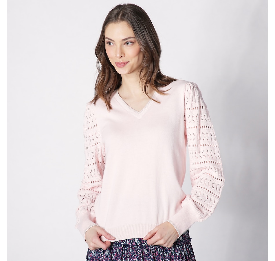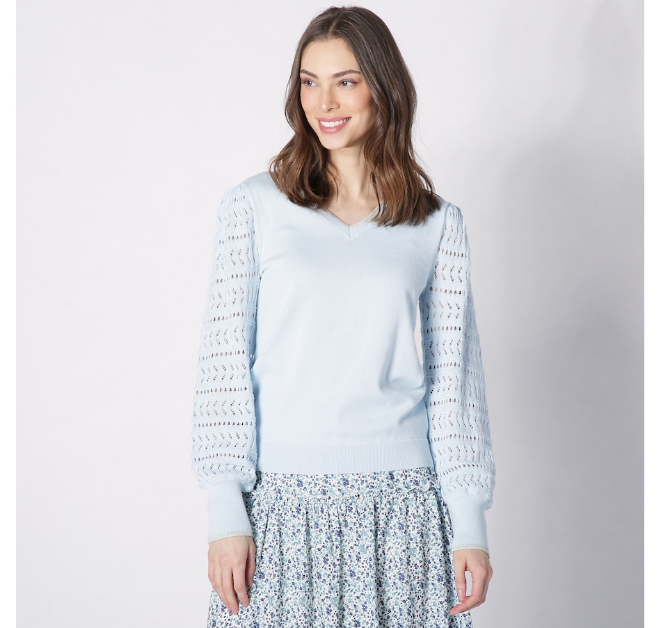 Create many fantastic looks and make a statement with this pointelle sleeve sweater from Crystal Kobe.