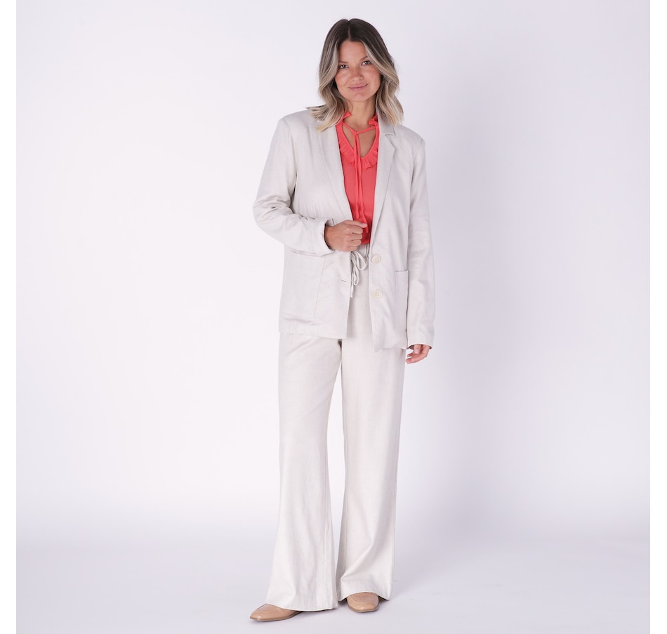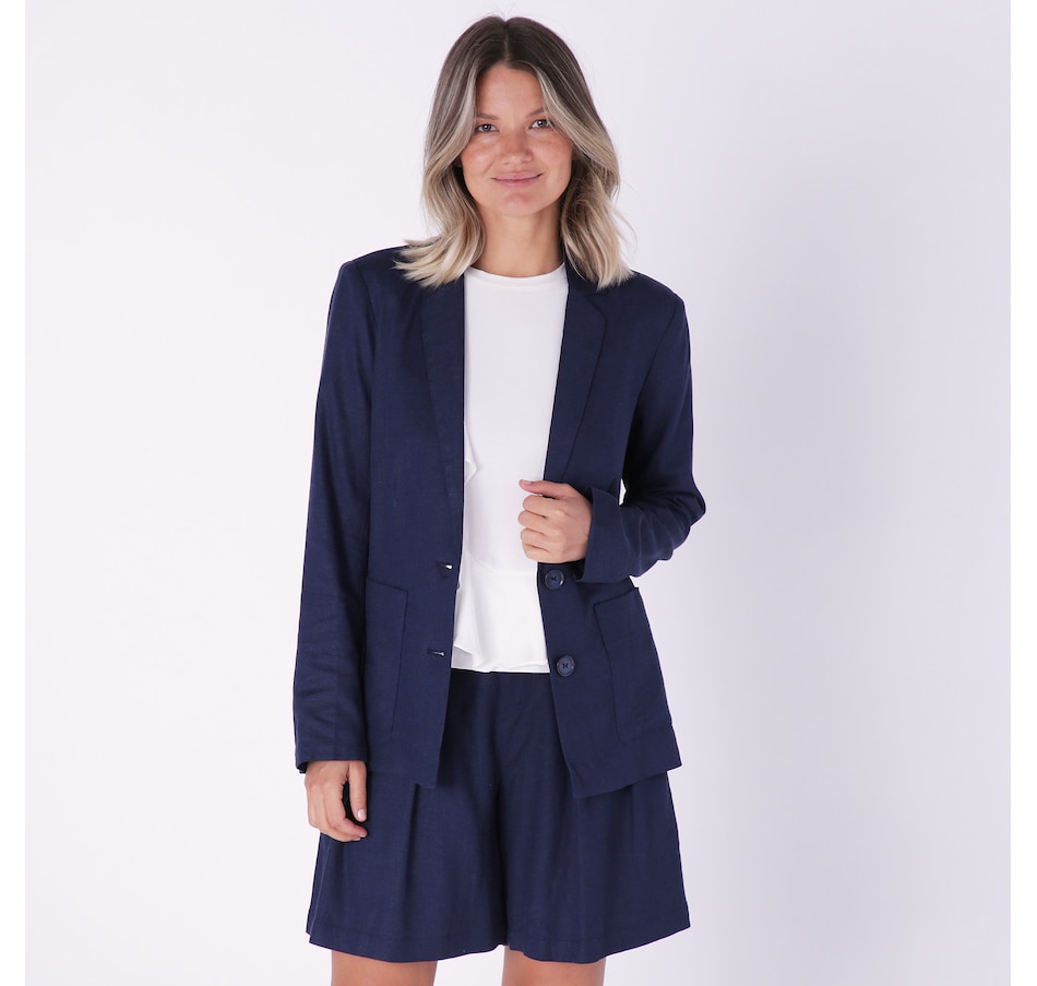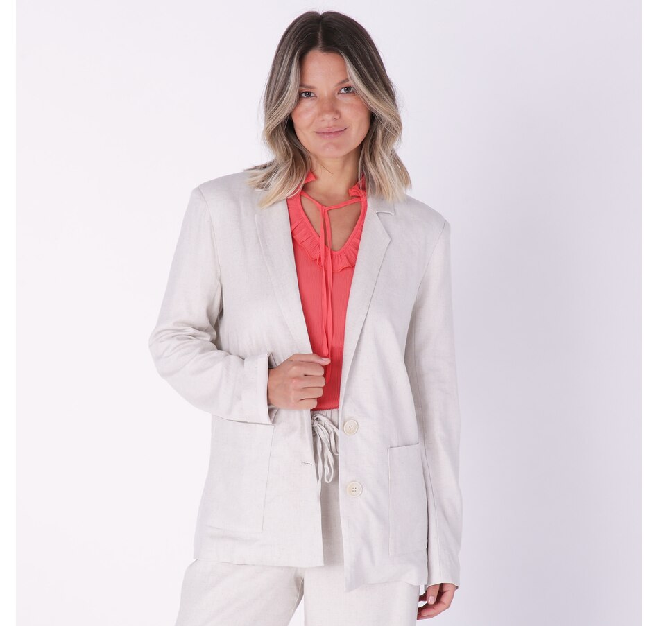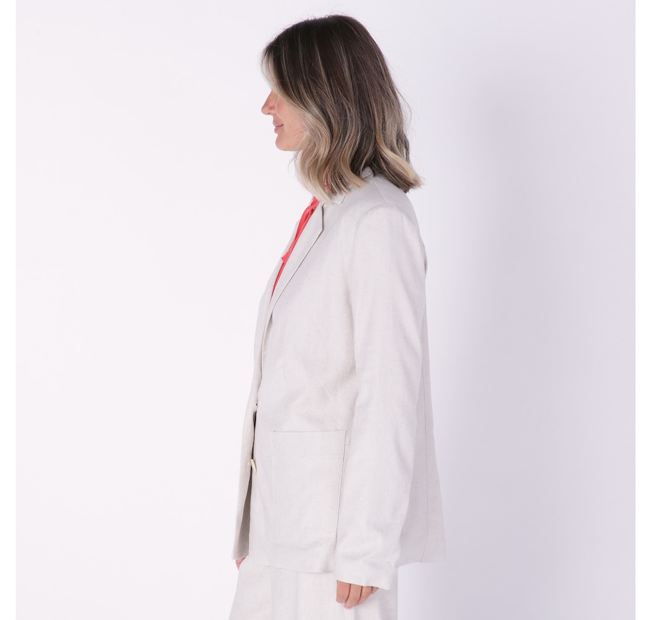 Compliment your look with something classic wearing this stretch linen suit jacket from Crystal Kobe.