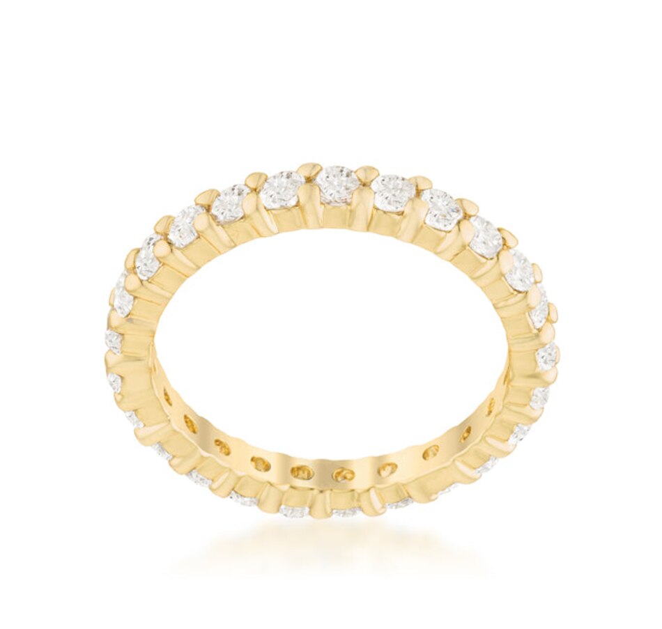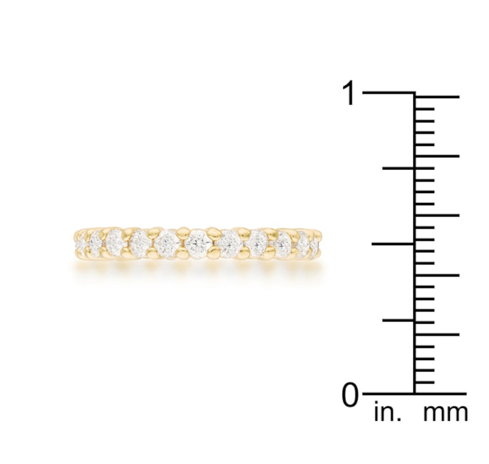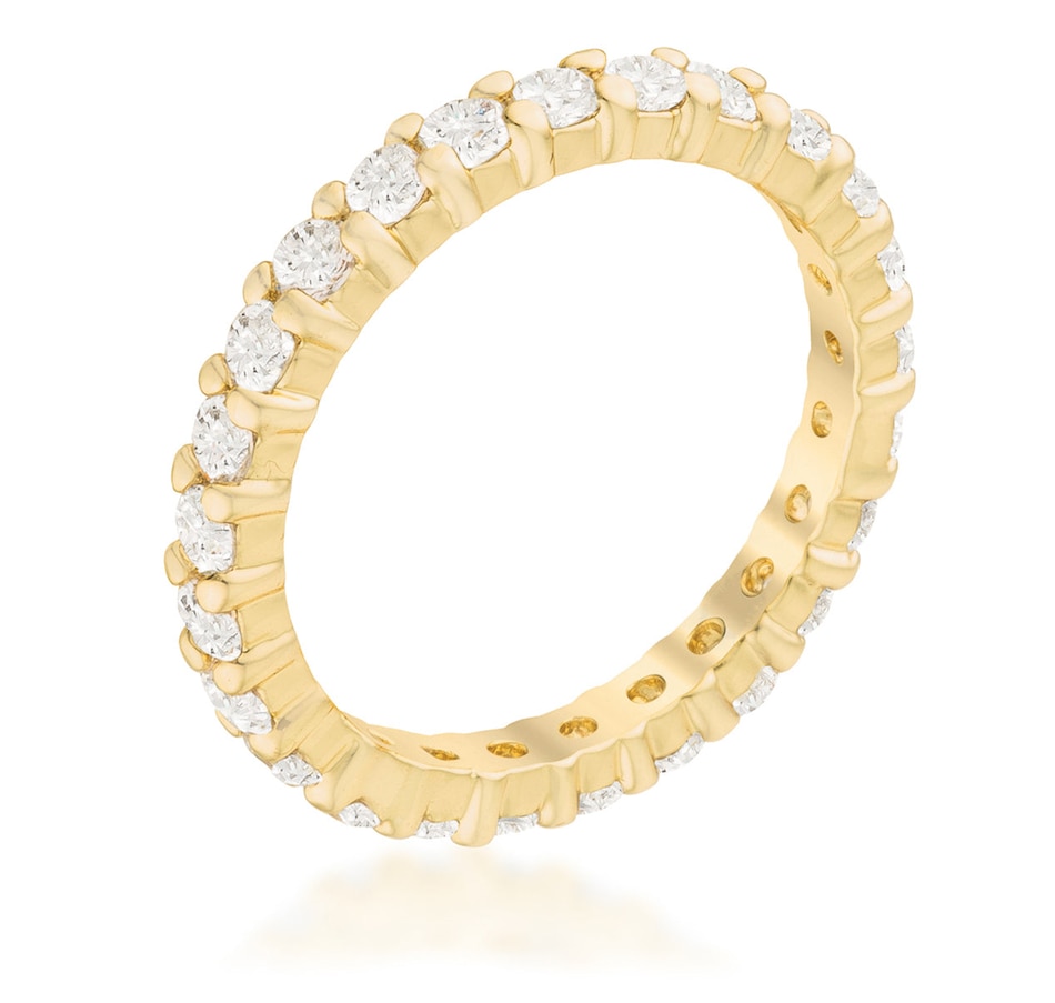 Eternity band ring 18k gold-plated brass to give a high polished finish wrapped around with round Cubic Zirconia stones. An everyday ring that can be worn stacked (because two is better than one). This ring is available in other colors for a mismatched unique style.