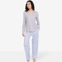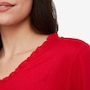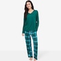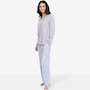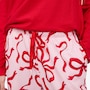 Unwind in effortless elegance with this bliss knit ruffle v-neck sleep set. This dreamy duo features a relaxed, easy fit for ultimate comfort, paired with delicate details that make lounging feel luxurious. The curved v-neck top is accented with a foldover mini ruffle for a soft, feminine touch, while lettuce edges at the sleeve openings add subtle charm. The long pants include side seam pockets for convenience and an encased elastic waistband with a twill tape drawcord finished with thread wraps for a secure, stylish fit. Perfect for cozy nights and laid-back mornings, this set is your new favourite.