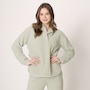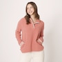 • Relaxed fit, snap front closure, dropped shoulder, side seam pockets, contrast binding for accent colour, huggy logo