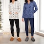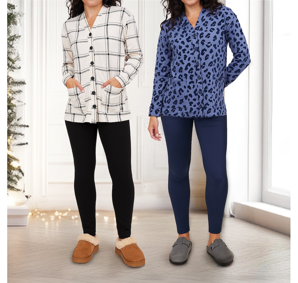 Embrace the pinnacle of stylish comfort, and in a variety of different colours and prints with this Comfortwear cardigan and legging set from Cuddl Duds. Get yours today at a fabulous showstopper value, right here at TSC!