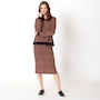 • Dropped shoulder, contrasting bands at neck, cuff and hem