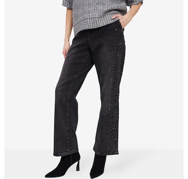 Embrace easy style and comfort all at once with this beautiful crochet trim straight leg pant from Cuddl Duds.