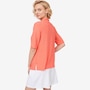 This button up shirt from Cuddl Duds is designed with an eyelet body, a collared neckline with a functional button front, and elbow length sleeves. It also features side slits and a classic Huggy logo. It is composed of a softly peached jersey for an ultra soft feel against your skin, and its fabric wicks to keep you dry. Get yours today at a fabulous showstopper value, right here at TSC!