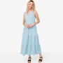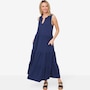 This tiered sleeveless maxi dress features a split neckline with a soft gathering smocking, a waist seam and is two tier with a soft gathering. It also has side seam pockets, a Huggy logo and a softly, peached jersey for an ultra soft touch against your skin.