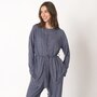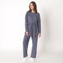 • Crew neckline, play on fabric direction, side slits • Straight leg, elasticized waist, side seam pockets, tie belt in self, play on fabric direction • Sweater knit look with a twist, lightweight knit • Lightly brushed for an ultra-soft comfort • Spandex for flattering fit and flexibility • Elevated feminine details for effortless style • Fabric: 96% polyester, 4% elastane • Care: machine wash in cold on gentle cycle with like colours; only non-chlorine bleach as needed; tumble dry on low and remove promptly; cool iron if needed • Made in Cambodia