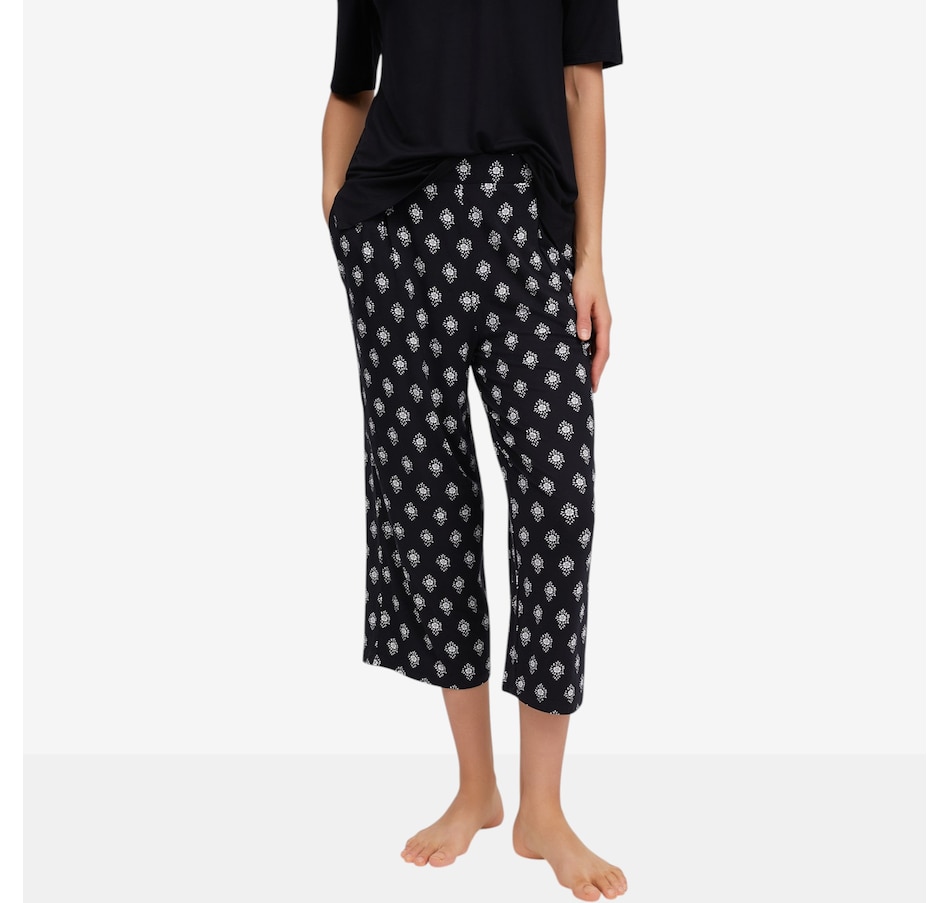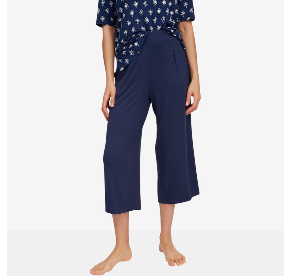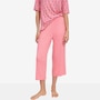 The Soft Stretch cropped pant from Cuddl Duds is designed in a relaxed, wide‑leg silhouette with a cropped 21" inseam. An elastisized waistband with a flat front creates a smooth, comfortable fit, while pleats at the front legs add subtle structure. Side seam pockets provide everyday practicality, and the Huggy logo adds a signature finishing touch.