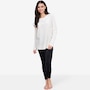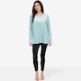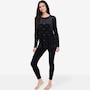 Add a touch of shimmer to your lounge look with this velour foil tunic and legging set. The scoop neck tunic features a high-low elliptical hem and side slits for a flattering, flowy silhouette that moves with you. Paired with body-hugging leggings, this set offers both comfort and style in one chic package. The wide elasticized waistband makes for a secure, comfortable fit, while the soft velour fabric with foil detailing brings a hint of glamour to your everyday. Perfect for relaxing at home or stepping out in effortless style, this set is your new go-to for cozy sophistication.