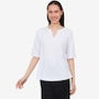 Available in a beautiful selection of colours, you'll centre your look in easy style with this Flexwear split v-neck tee from Cuddl Duds.