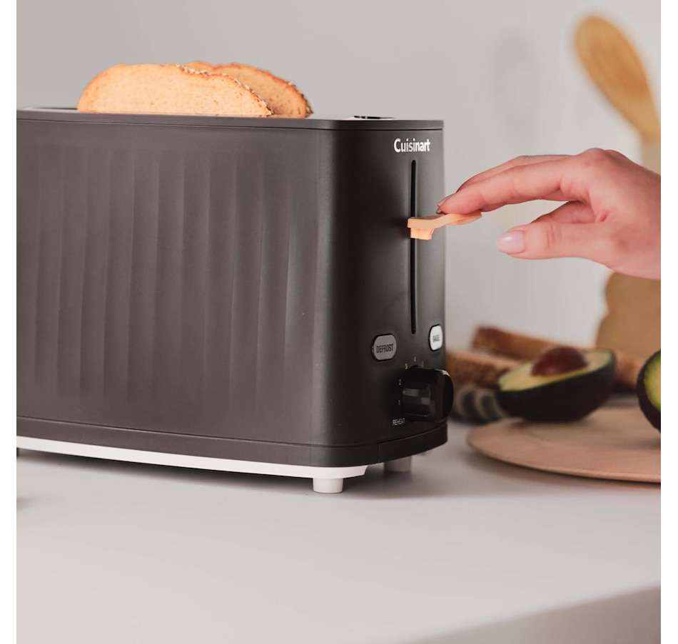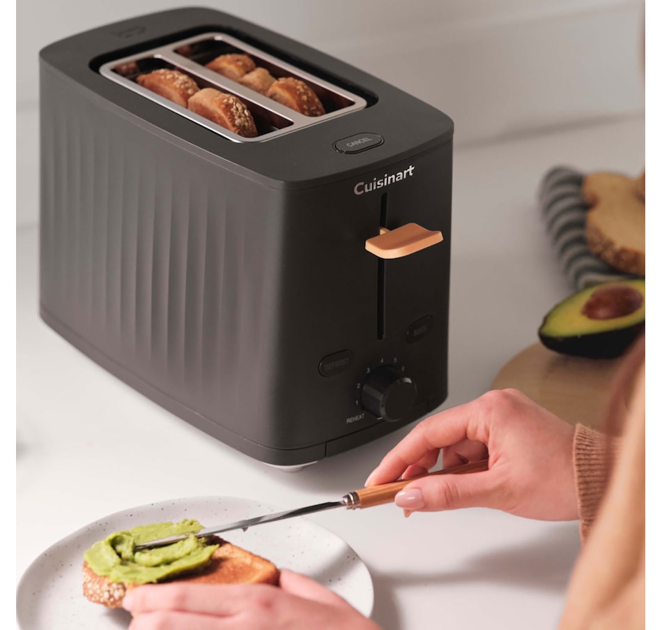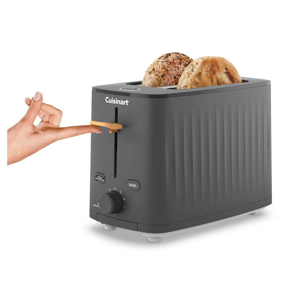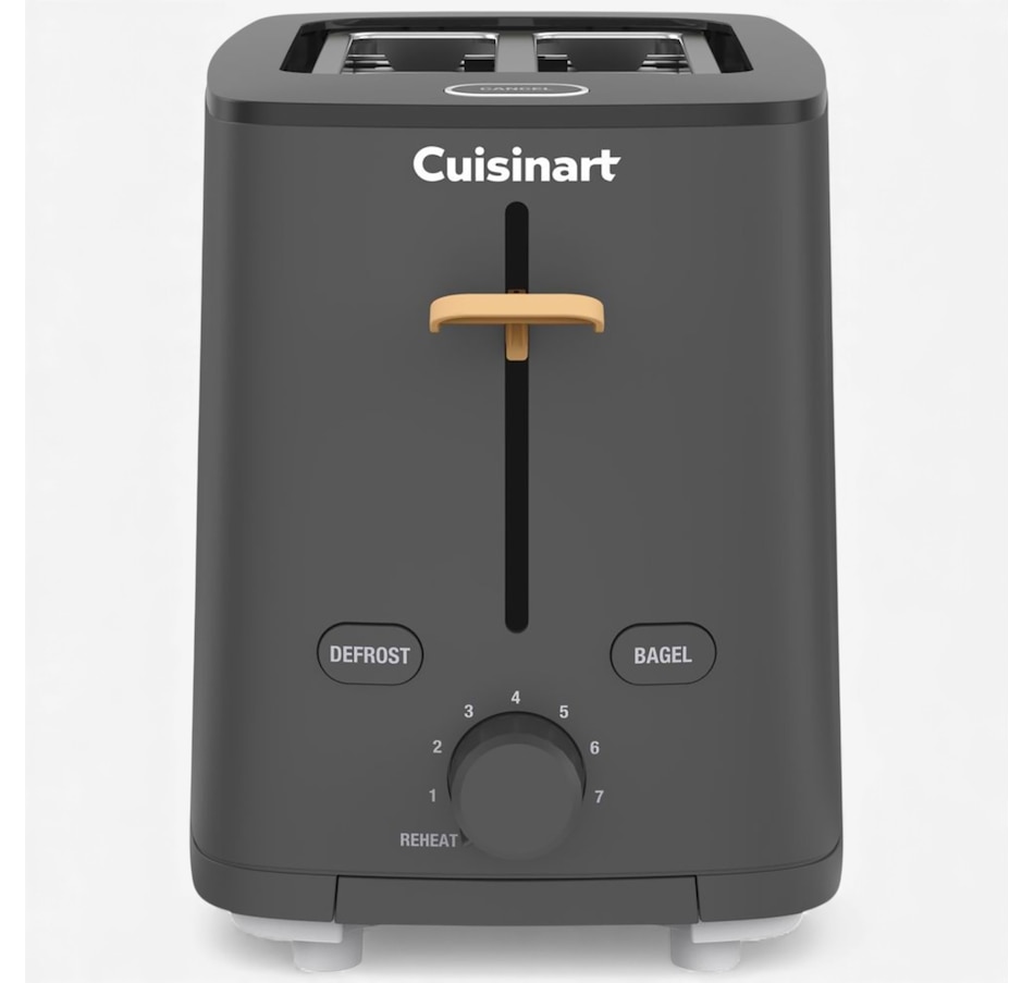 Form meets function in this new two-slive toaster from Cuisinart. Whether optimizing a hectic morning or mindfully savouring breakfast, this versatile toaster is designed to fit into every morning routine. On top of essential settings such Bagel, Defrost and one to seven shade settings, it also includes features such as QuickView and Reheat to provide max control over the toasting process. Keep countertops looking clear with the easy front-access crumb tray for convenient cleaning and rear cord storage to hide excess cord length.