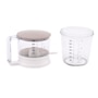 • Easy-to-read measurement marks on the top sifting container and removable catch basin/measuring cup