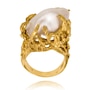 Custom Made 14KT Yellow Gold Abstract Designed Baroque Shaped Pearl Ring