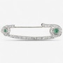 Custom Made Platinum Old European Cut Diamond and Emerald Safety Pin Brooch