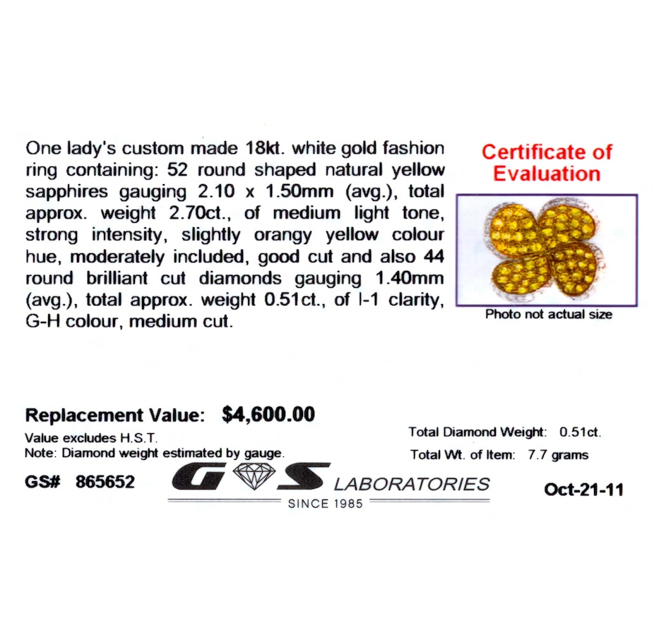 • Specs: (52) round shaped sapphires (2.70ct), (44) round brilliant cut diamonds (.51ct)
