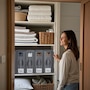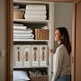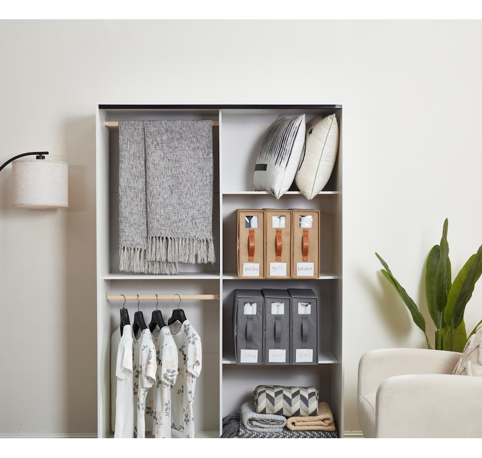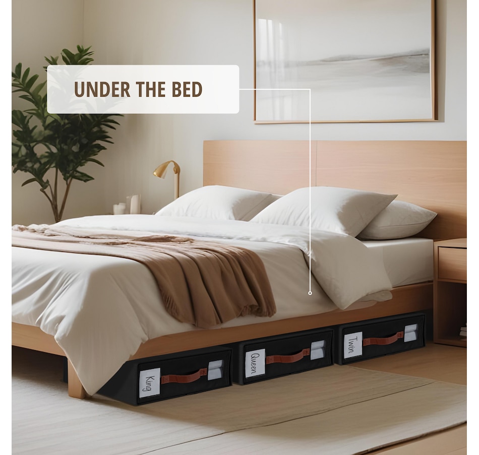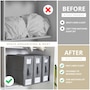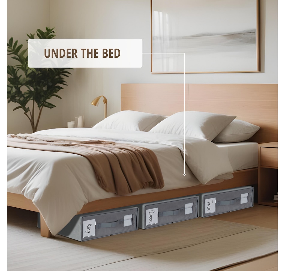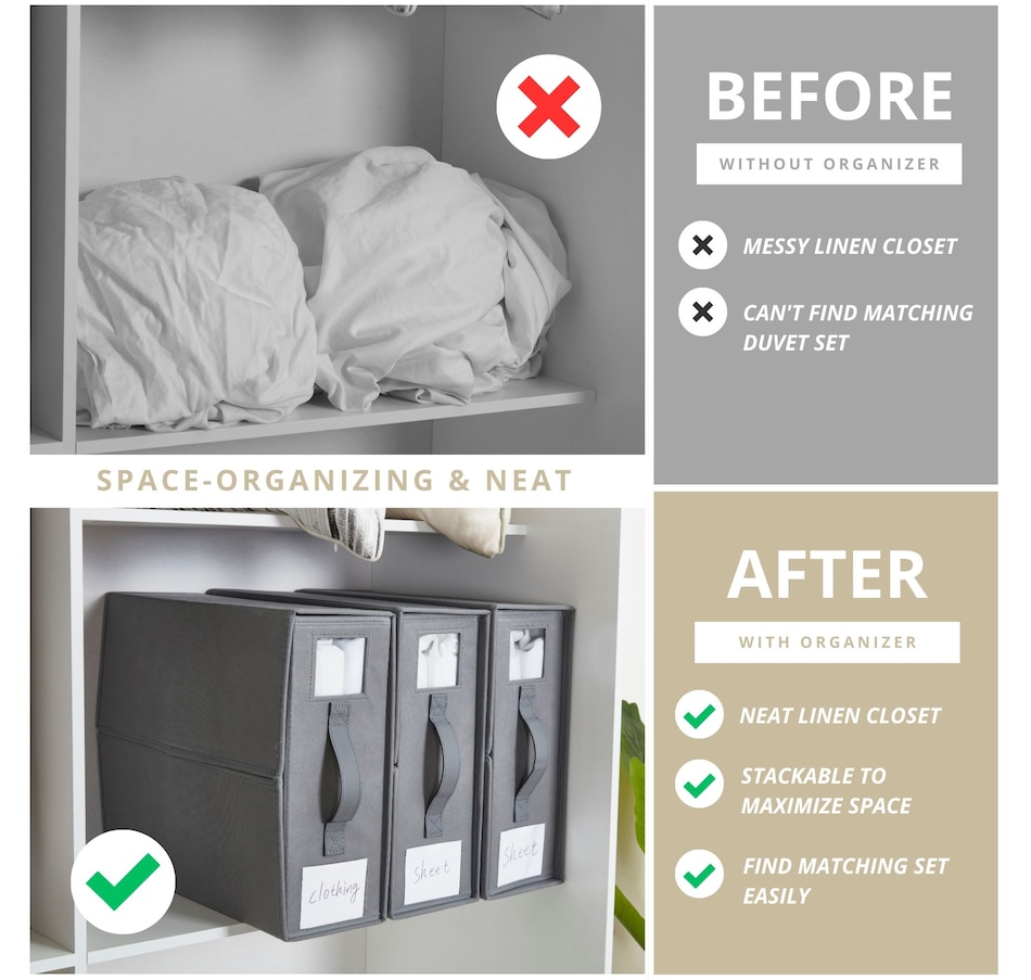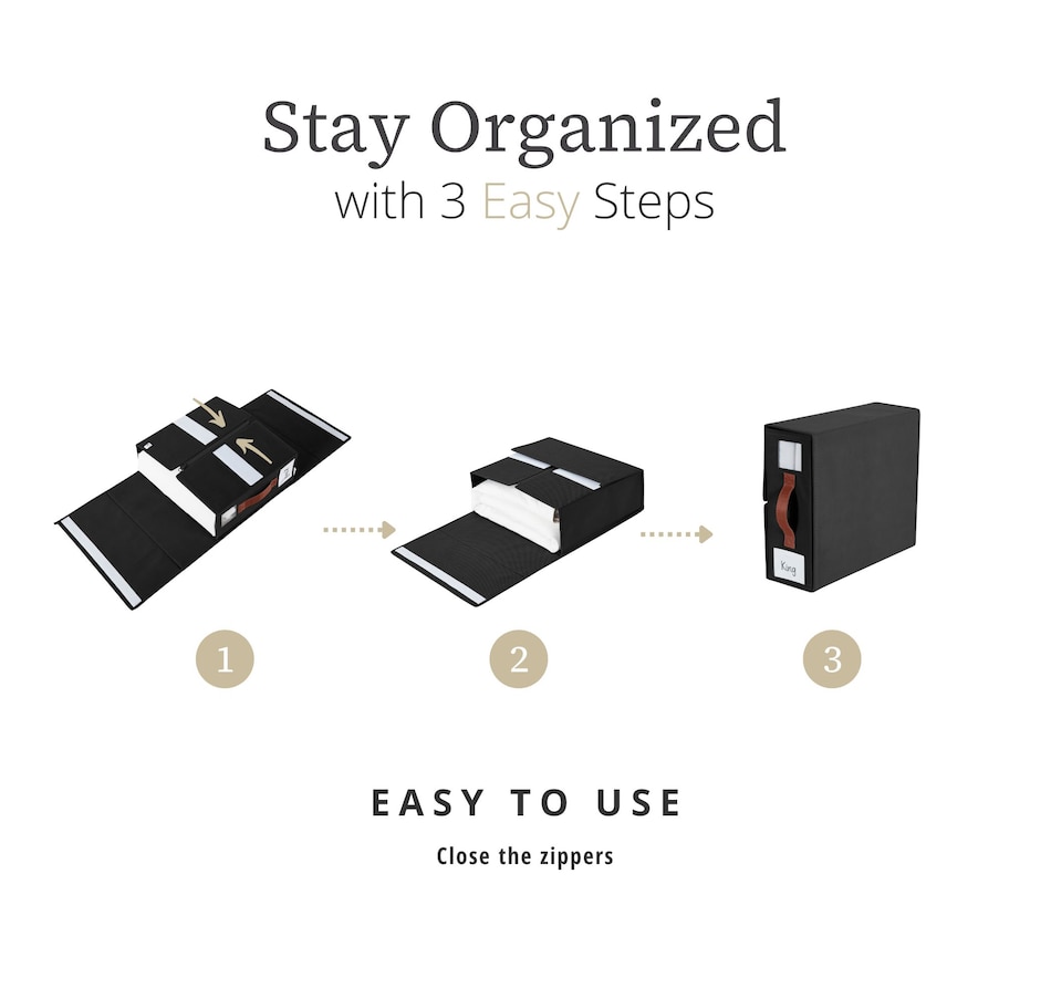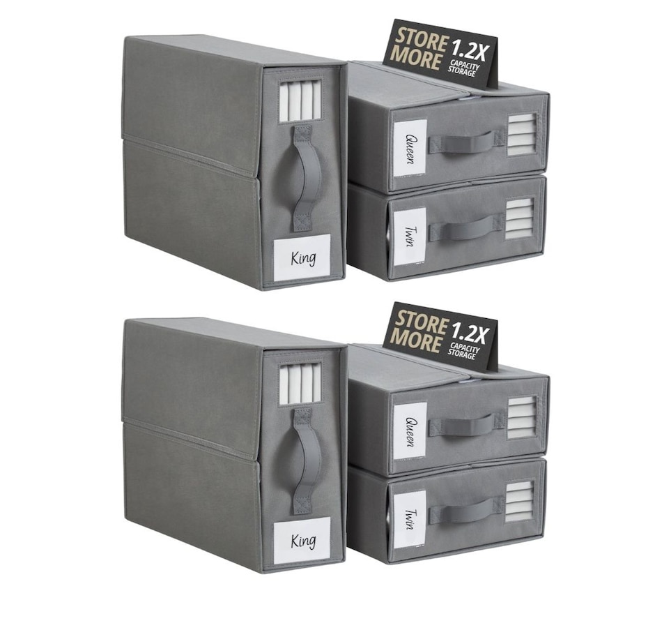 DECOMOMO offers a sheet organizer for linen closet to streamline bedroom storage. The sheet set organizer is designed for efficient bedding storage, keeping your bedroom clutter-free. It features label holders and a clear window for easy identification of stored sheets. The Velcro and zipper closures compress the sheets organizer for linen closet organizer, saving space and providing a secure seal against dust and pests. Each pack includes three sheet storage organizers with dimensions of 15” x 13” x 5”, suitable for queen/king sheet sets or duvet cover sets. Set of 4 Size: 15” (L) x 13” (W) x 5” (H) / 38cm (L) x 33cm (W) x 13cm (H) Model: 23110-4P