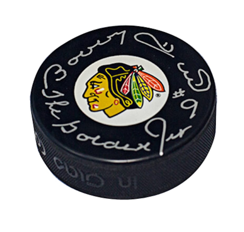 A great piece of memorabilia from one of the Golden Jet Bobby Hull in the form of a Chicago puck with the Golden Jet inscription. The perfect gift for any sportsfan, treat yourself or a friend!