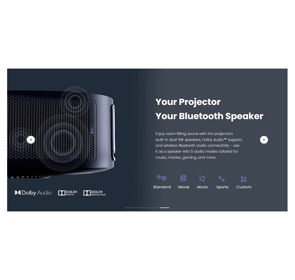 Enjoy immersive sound with dual built-in five-watt speakers and Dolby Audio enhancement. Select from various picture and audio modes for movies, sports, games and more to view everything in stunning quality; three 3D modes including Blu-ray 3D are supported, and the upgraded smart image adjustments are exceptional. Atom integrates multi-point dTOF (direct time-of-flight) sensors, CMOS, gyroscope and opto-sensor modules along with Dangbei's intelligent AI algorithms for faster, more accurate and automatic adjustments; this greatly reduces manual adjustments. It also handles autofocus, auto keystone, intelligent screen fit and obstacle avoidance in seconds. The exclusive side key on the remote control enables faster-than-ever auto focus with a single press.