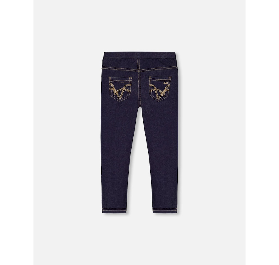 Our Dark Blue Denim Jeggings are an absolute must-have in every little girl's closet! Oh-so-soft in a stretch viscose/poly blend, these jeggings feature a skinny fit, a comfortable elastic waistband, contrast stitching, and back patch pockets with embroidered details. When she's not in the mood to wear regular jeans, these are the perfect alternative!