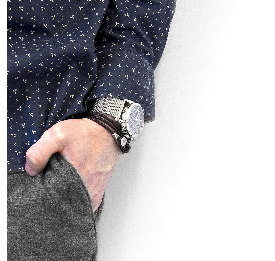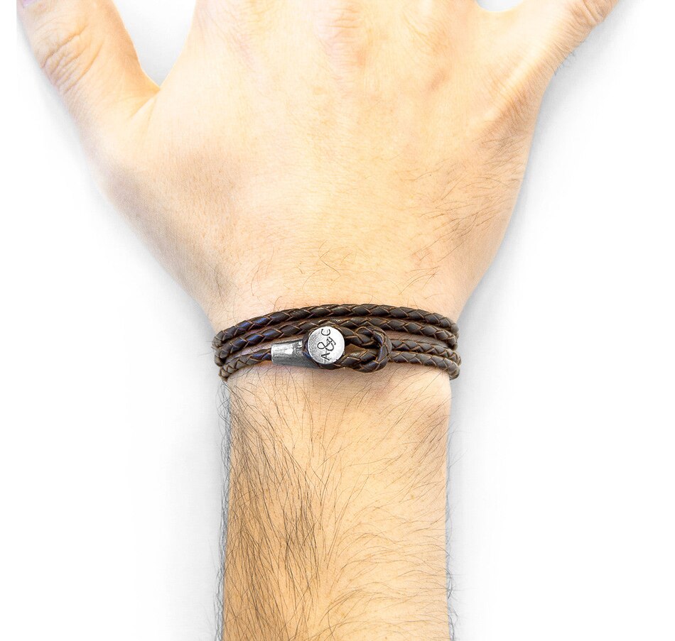 The Dark Brown Dundee Silver and Braided Leather Bracelet was both designed and skilfully handcrafted completely in Great Britain. Combining British craft manufacturing with a discerning modern-minimalist style, this ANCHOR & CREW bracelet features:Genuine and natural round-shaped braided leather (GB)Secure solid .925 sterling silver mushroom-button cleat (GB)SIZINGThis bracelet is one size fits all, with the leather able to extend or tighten to suit your wrist size. To take the bracelet on or off your wrist, simply slide the one adjustable knot around the leather to make the loop size smaller or larger, and once set, keep the loop size consistent and continue wearing by easily unhooking the loop over the clasp. As pictured, the bracelet is most secure when the leather loop is fed through the smaller loop that emerges beyond the clasp. Less is More.