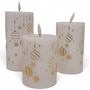 Each candle is built with a wet-look Resin ring that looks like real melted wax reflecting the flame. It has a flameless LED flickering flame on a realistic, flexible wick that is dimmable with the remote, which can also control multiple candles. It also has a timer of 2, 4, 6 or 8 hours and fibre optic capabilities. This product offers no fire hazard, and is safe around pets, children and breezy locations.