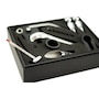 The Deluxe Wine Opener 8-piece Gift Set supplies you with all of the tools you need to open and enjoy a bottle of wine, be it white or red. This set has a wine opener with corkscrew, spare corkscrew, one corkscrew blade, one replacement blade and two wine stoppers. The included thermometer is the best tool to use to ensure you always enjoy your whites and reds at the perfect chilled, or room temperature. Included also is a foil cutter, wine collar and wine pourer so your gift set will last through years of wine parties and celebrations. This 8-piece Wine Opener Gift Set deserves a place in every modern home with sophisticated tastes.