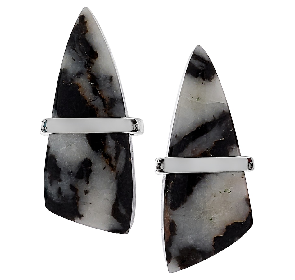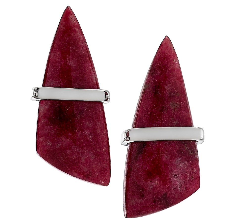 • (2) 23 x 9 mm fancy shape choice of gemstone; thulite (16.26 av.ctw), turquoise (11.82 av.ctw), white buffalo (14.89 av.ctw)