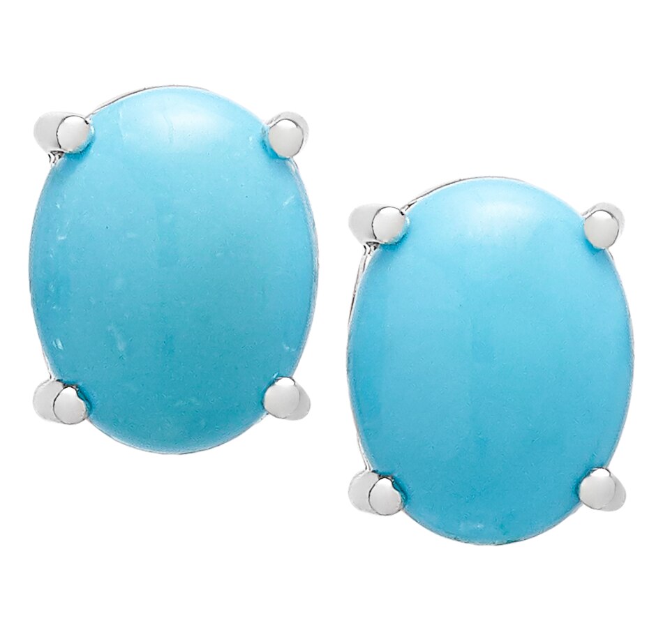 Sterling Silver Oval Cabochon Kingman Turquoise Earrings