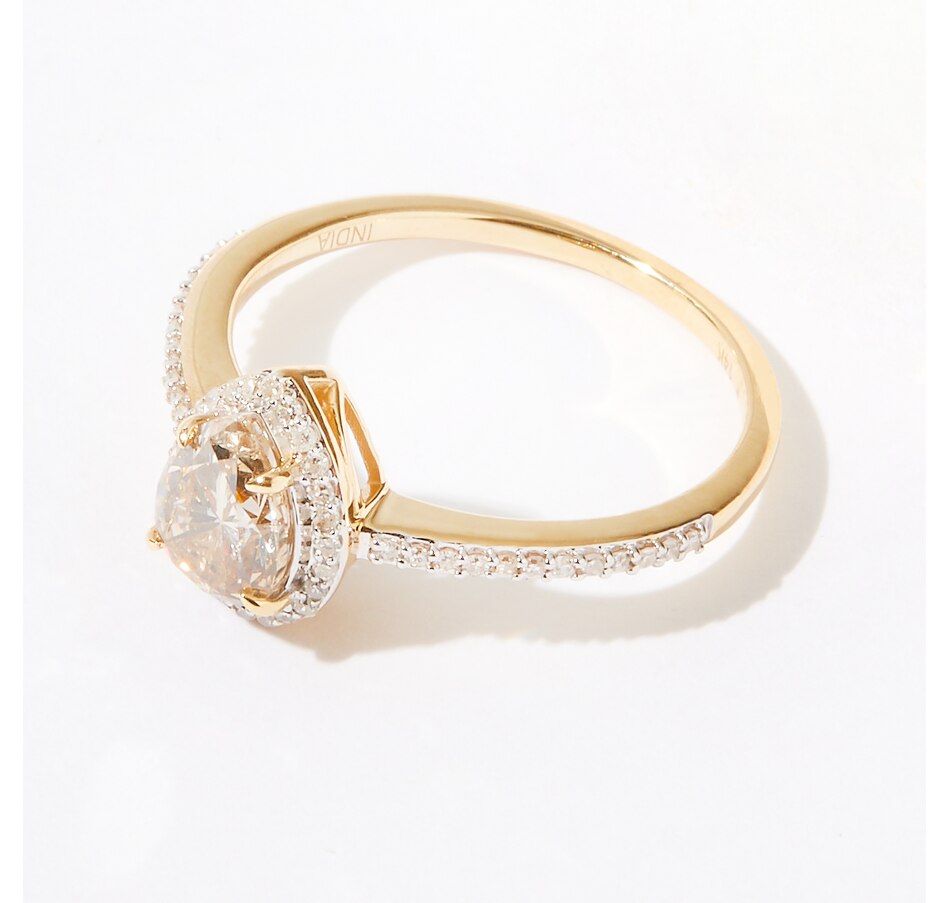 • (1) pear-shaped, prong-set and faceted champagne diamond (1.00 av. ctw)
