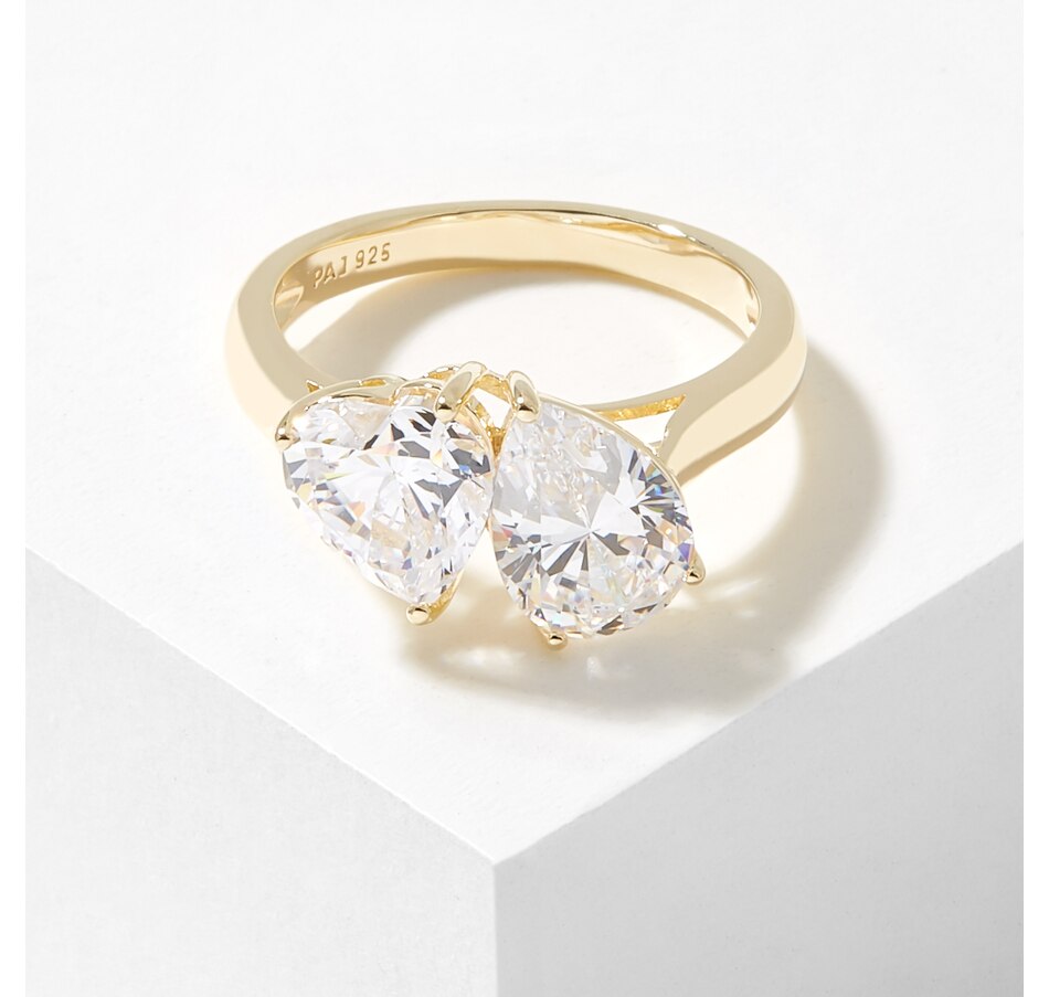 • (1) 8mm heart shape (1) 10x7mm pear shape, prong set & faceted diamonelle (looks like 3.51 av.ctw of real diamonds)