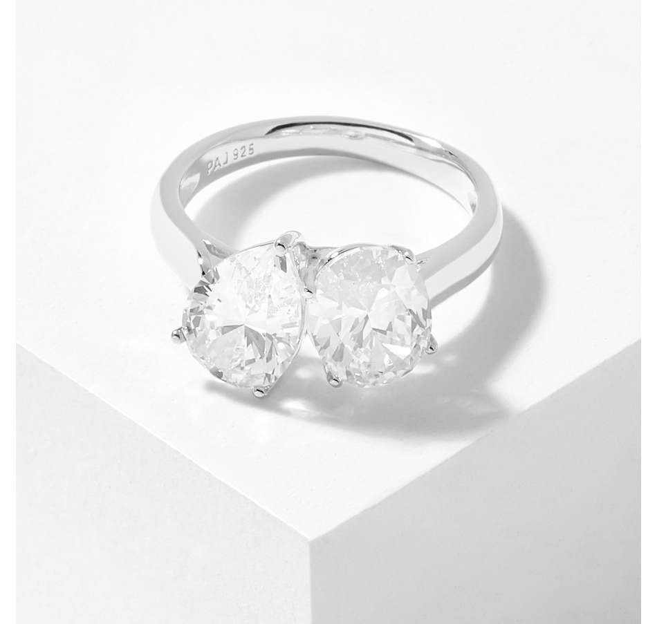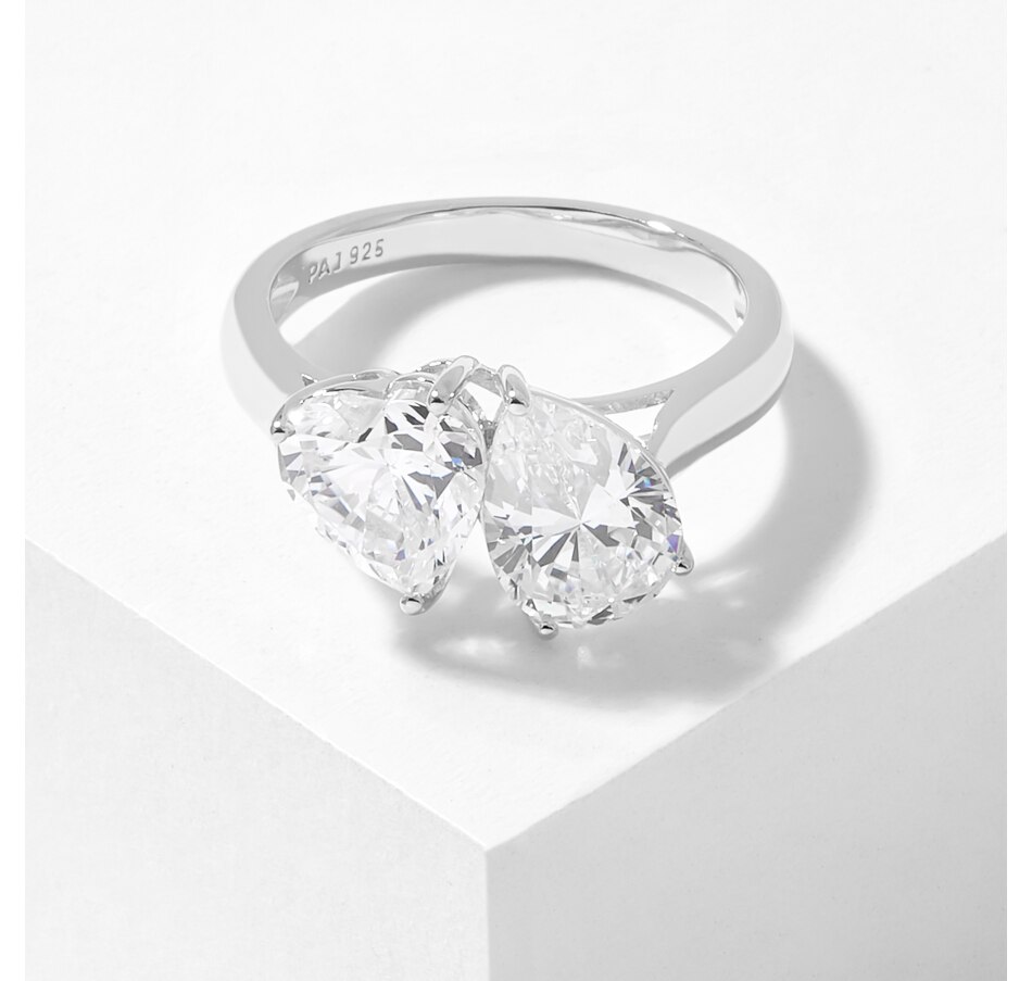 • (1) 9x7mm oval (1) 10x7mm pear shape, prong set & faceted diamonelle (looks like 3.66 av.ctw of real diamonds)