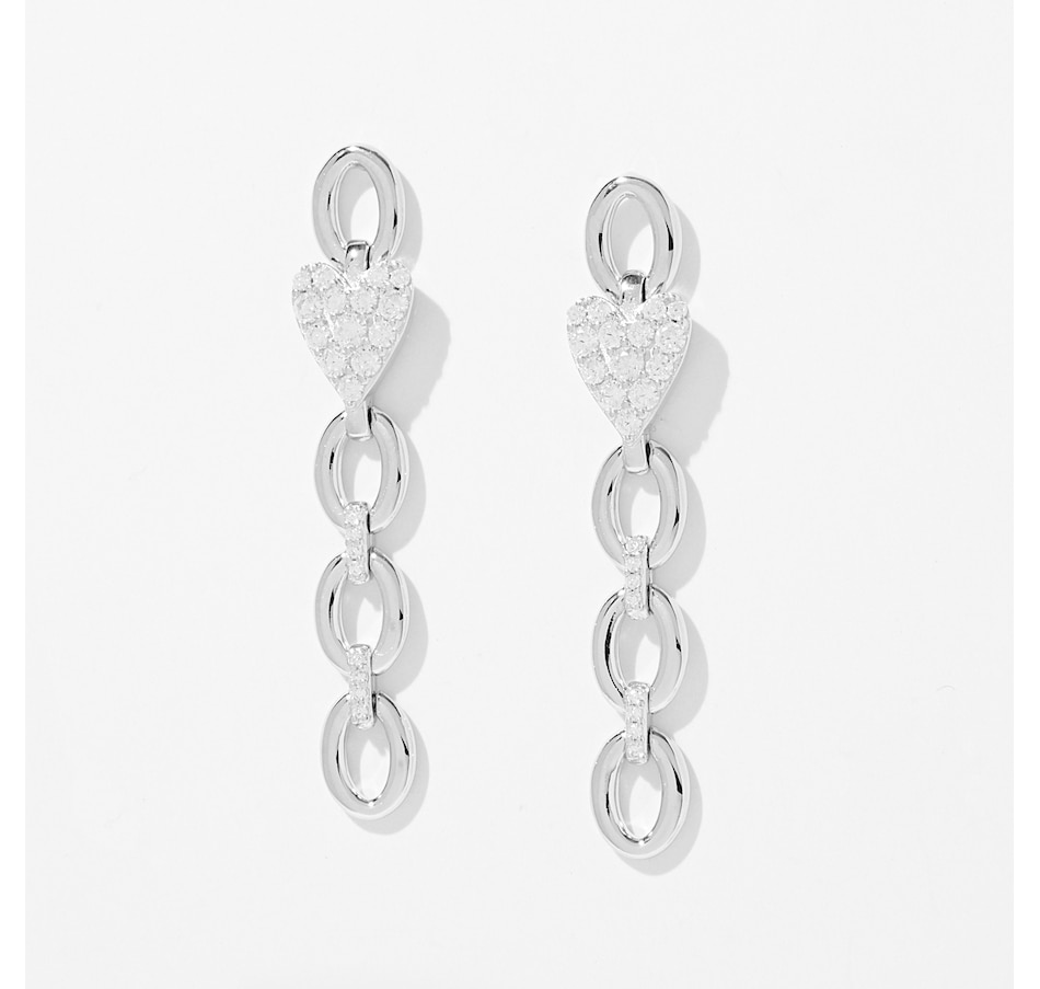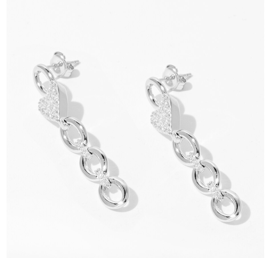 Sterling Silver Drop Earrings with Pave Heart