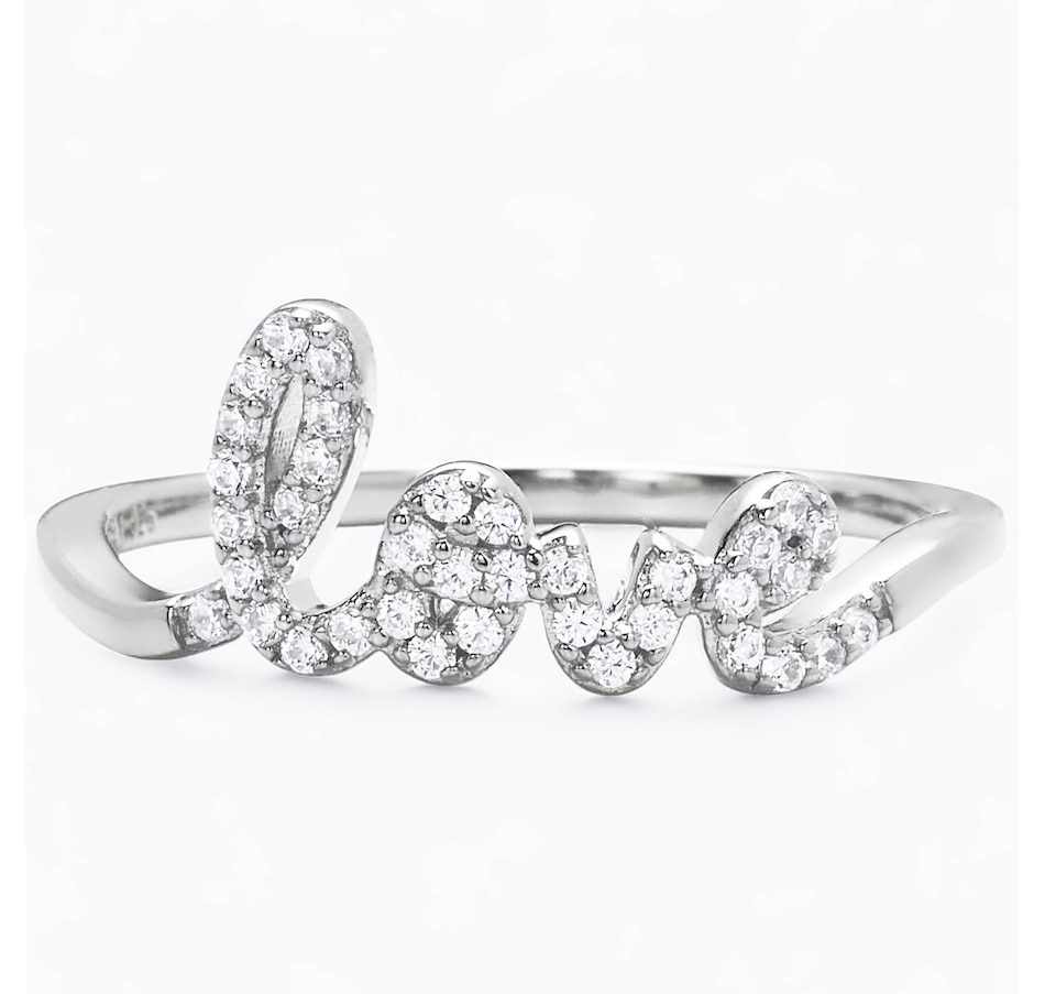 Add some undeniable sparkle and style to elevate every look with this beautiful "love" ring from Diamonelle.