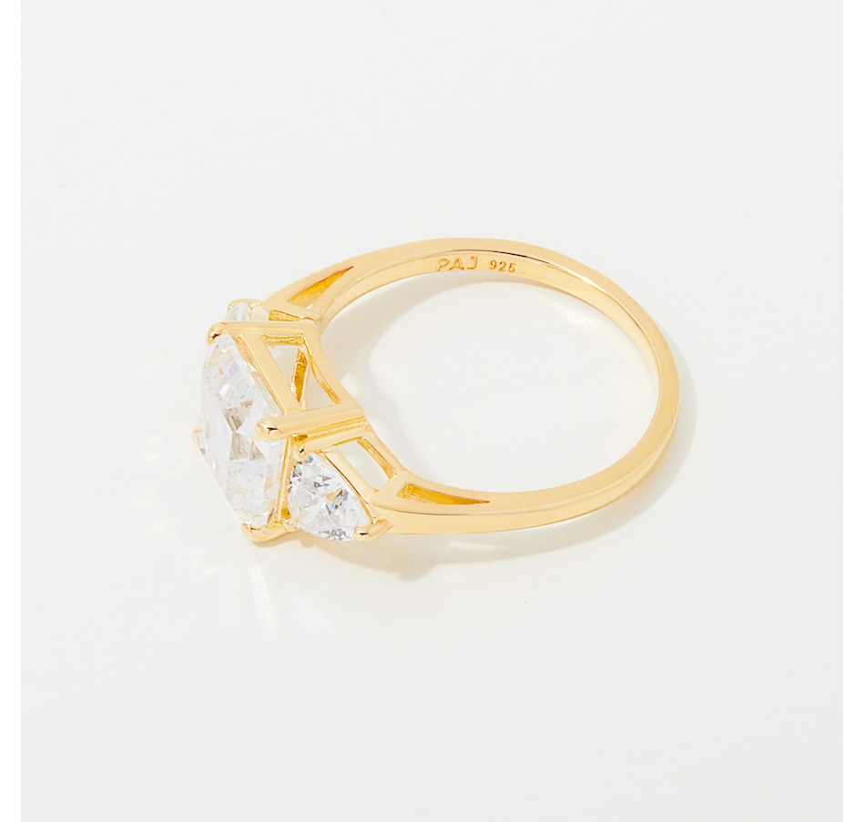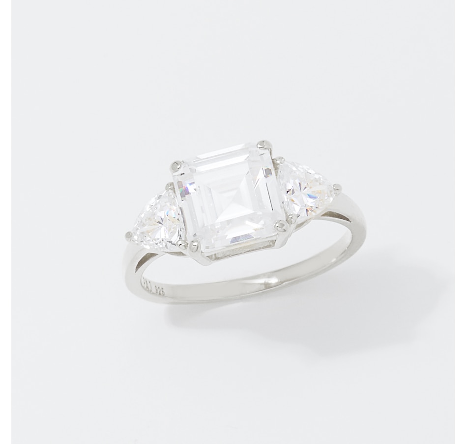 • (1) 8mm square asscher cut, prong set and faceted Diamonelle