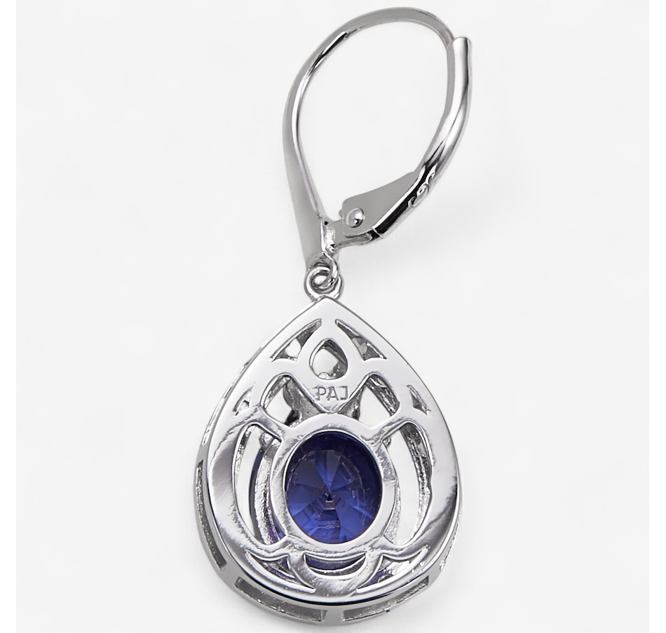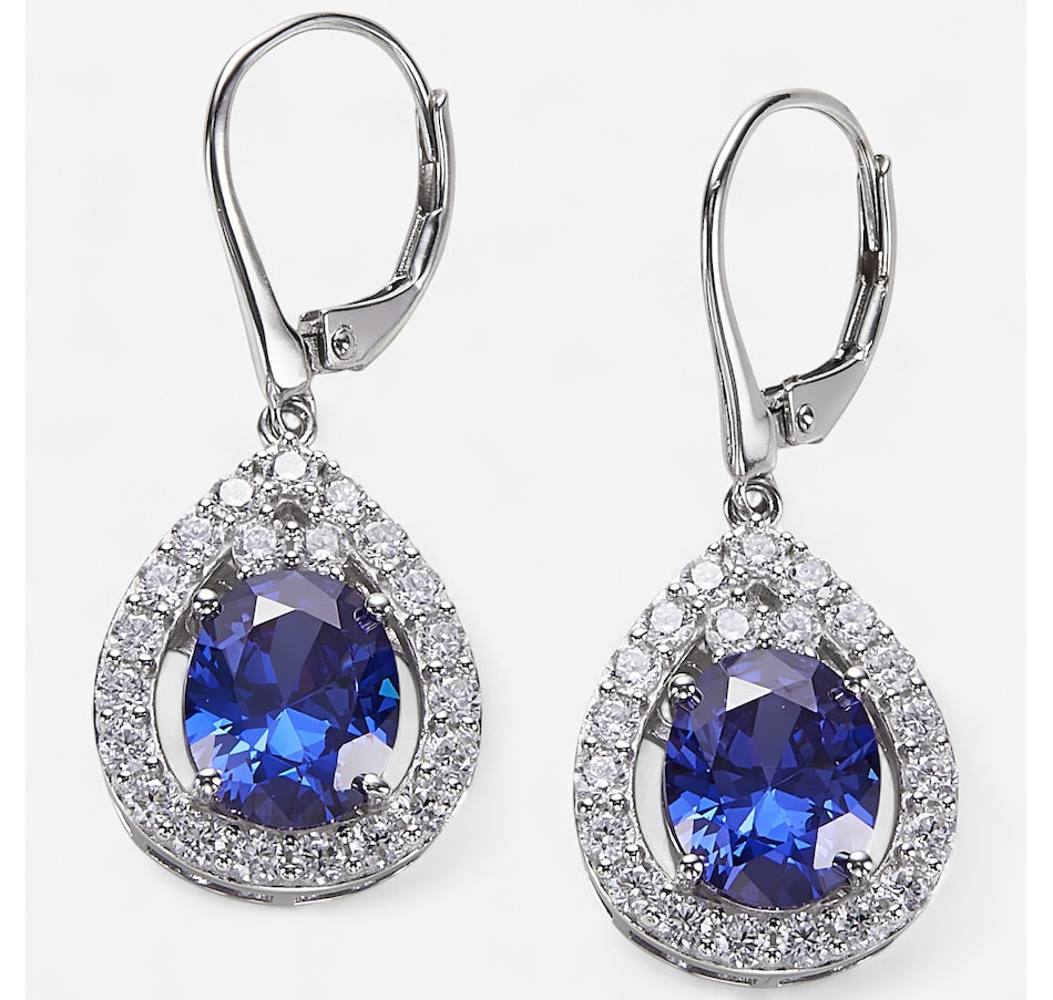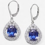 Sterling Silver Rhodium Plate Oval Simulated Tanzanite and Diamonelle Leverback Earrings