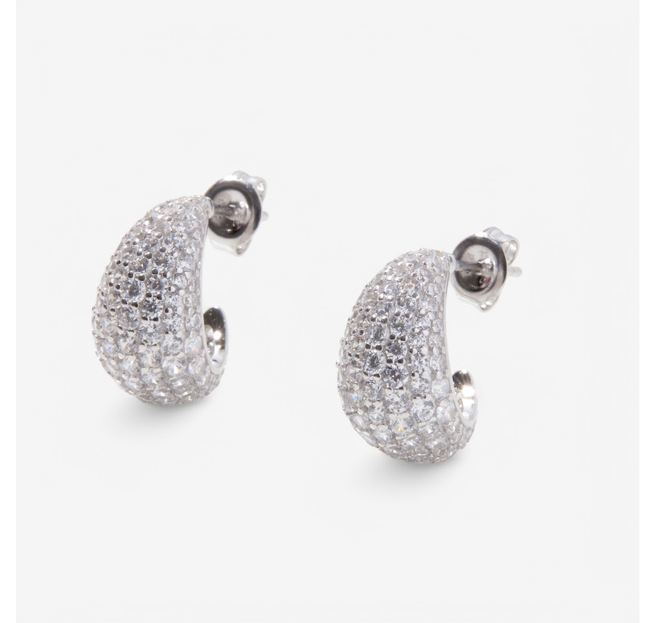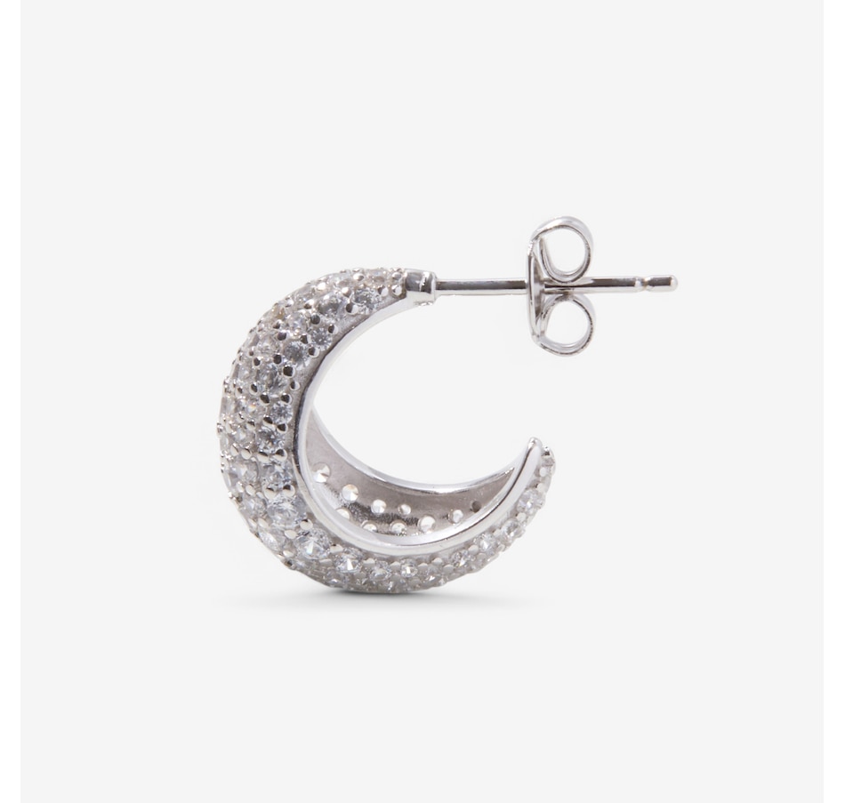 Sterling Silver Rhodium Plate Pave Set Diamonelle Half Hoop Earrings