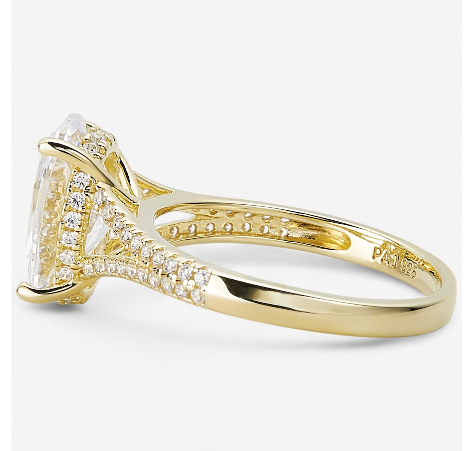 Diamonelle Sterling Silver Shaped Diamonelle & Hidden Halo Ring