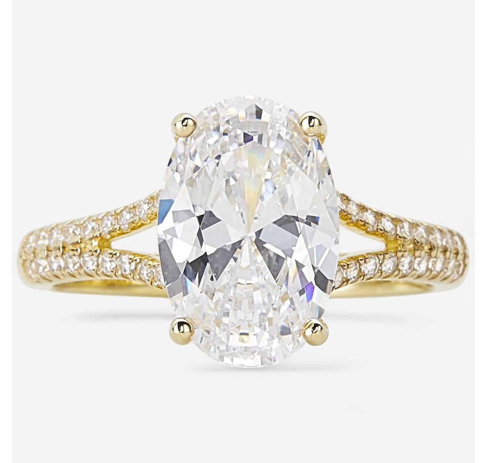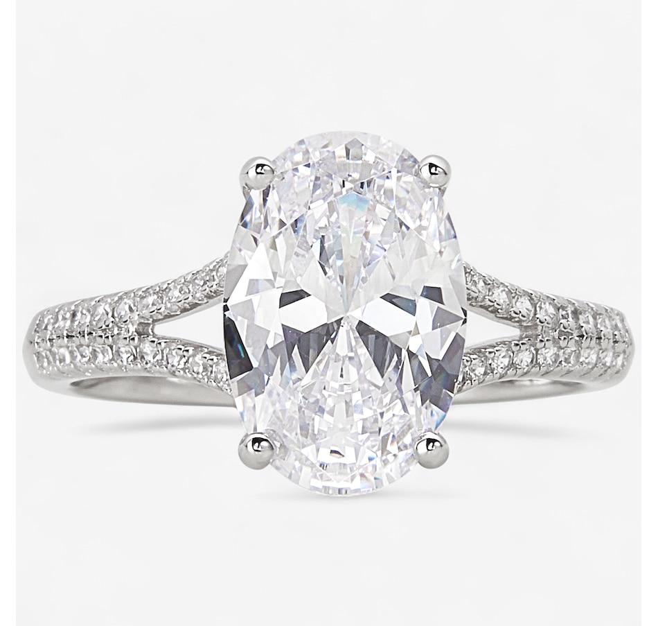 • (1) 12x8mm oval, prong set & faceted Diamonelle
