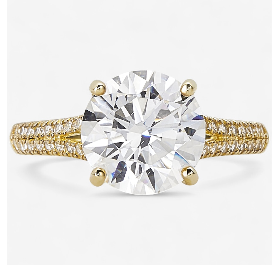 • (1) 9.50mm round, prong set & faceted Diamonelle