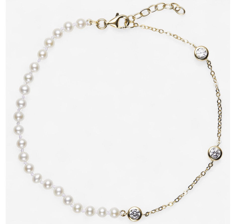 Diamonelle Sterling Silver Yellow Gold Plate Diamonelle and Pearl Station Anklet