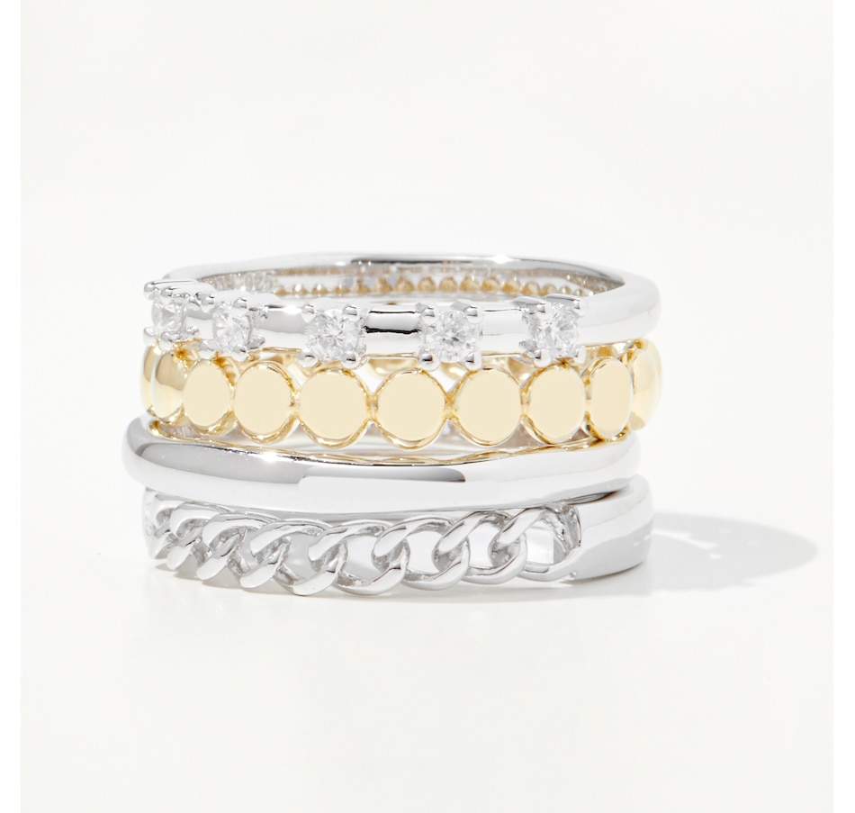 Elevate your look in beautiful, dazzling style wearing this set of four two-tone bands from Diamonelle.