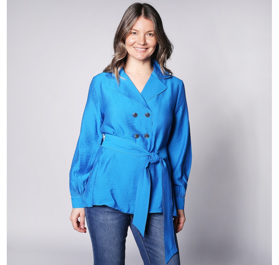 Available in a pair of fabulous colours, you'll centre every look in elevated style with this belted wrap blouse from Diane Gilman.