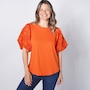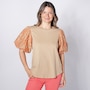 Diane Gilman Cotton Embroidered Eyelet Puff Sleeve Jersey Tee