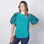 Centre your look in elevated, eye-catching style with this embroidered eyelet puff sleeve jersey tee from Diane Gilman.