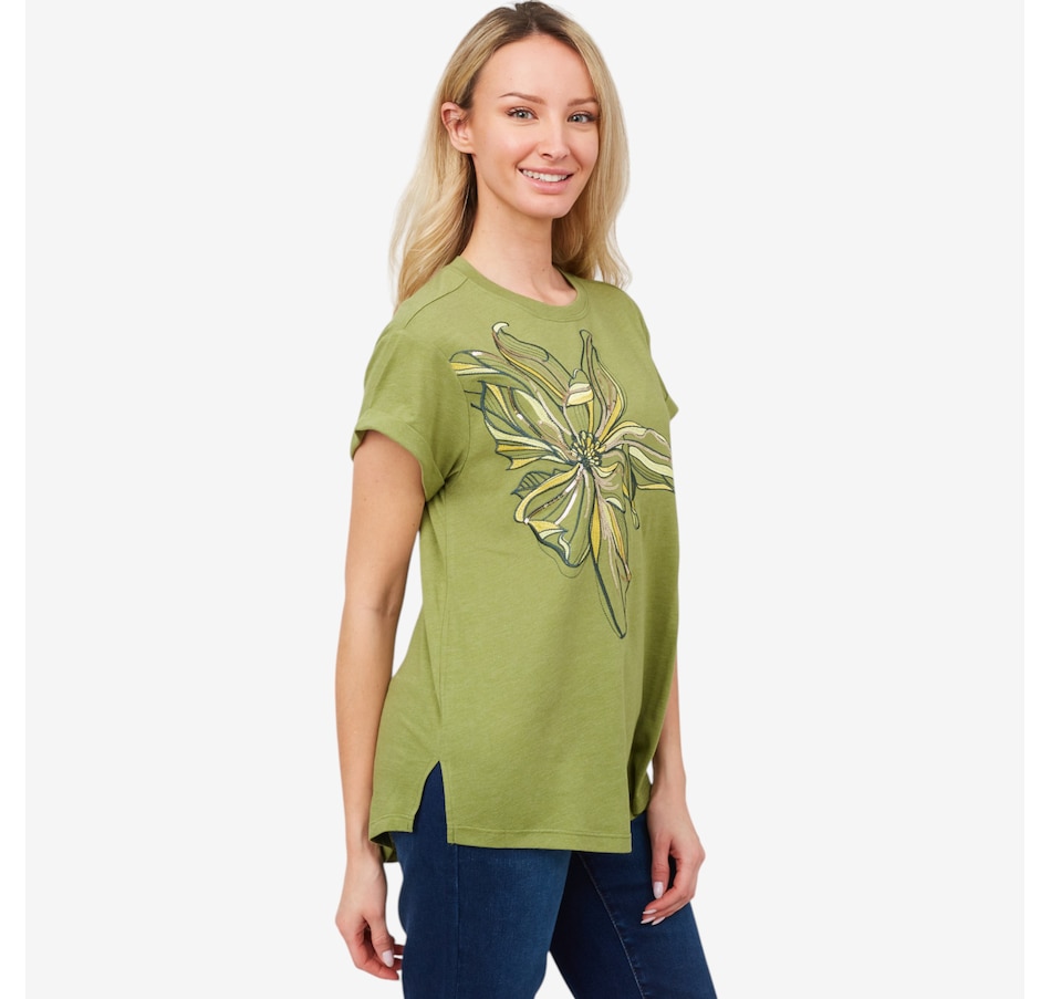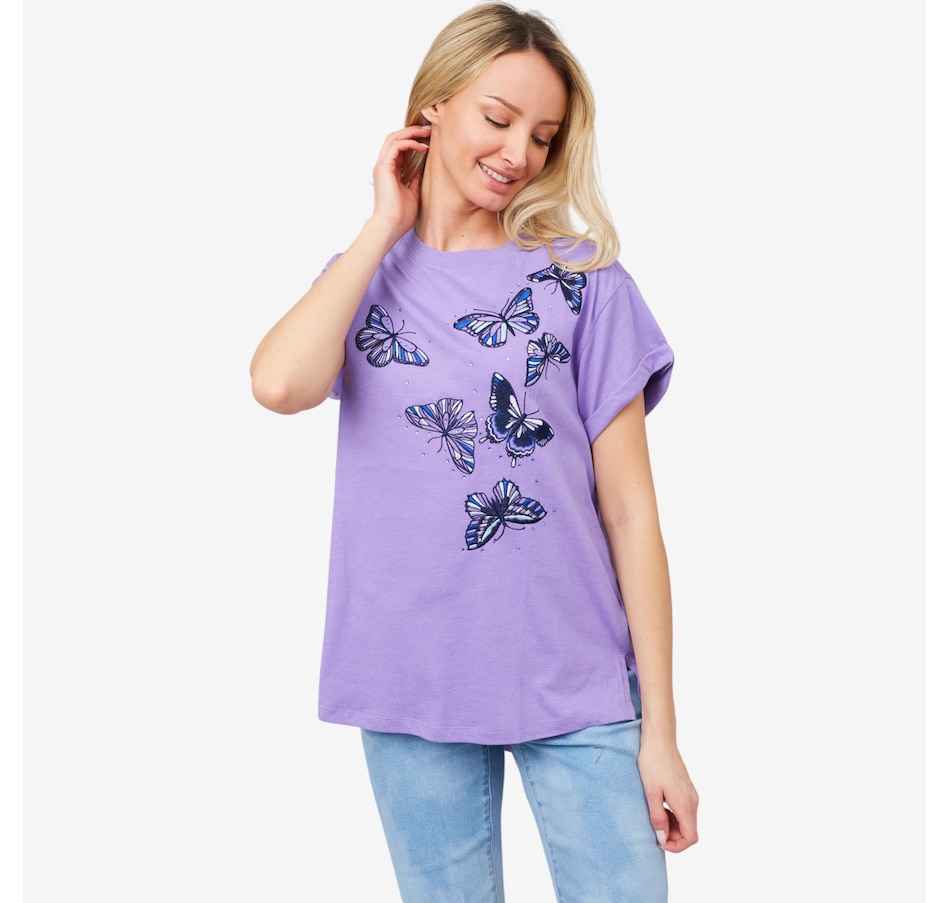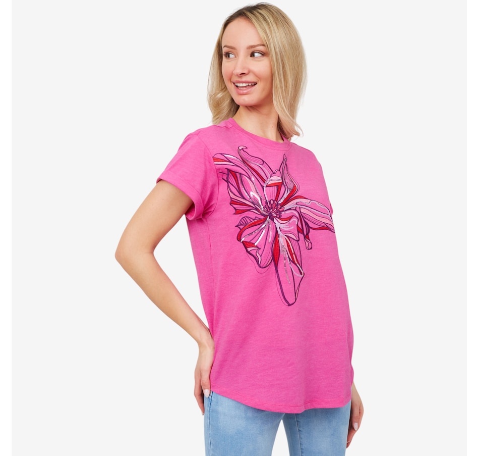 Available in a range of beautiful colours, you'll centre every look in easy style wearing this embellished hi-lo tee from Diane Gilman.