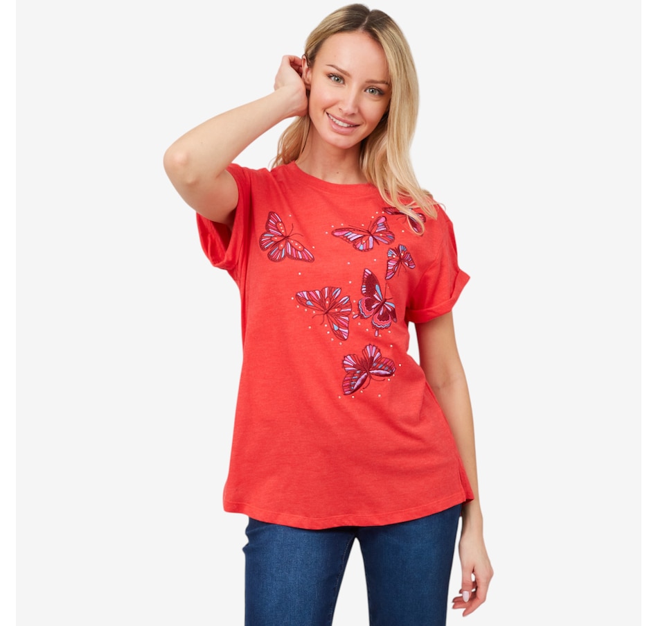 • Relaxed fit, pull-on, short sleeves, embellishment detail